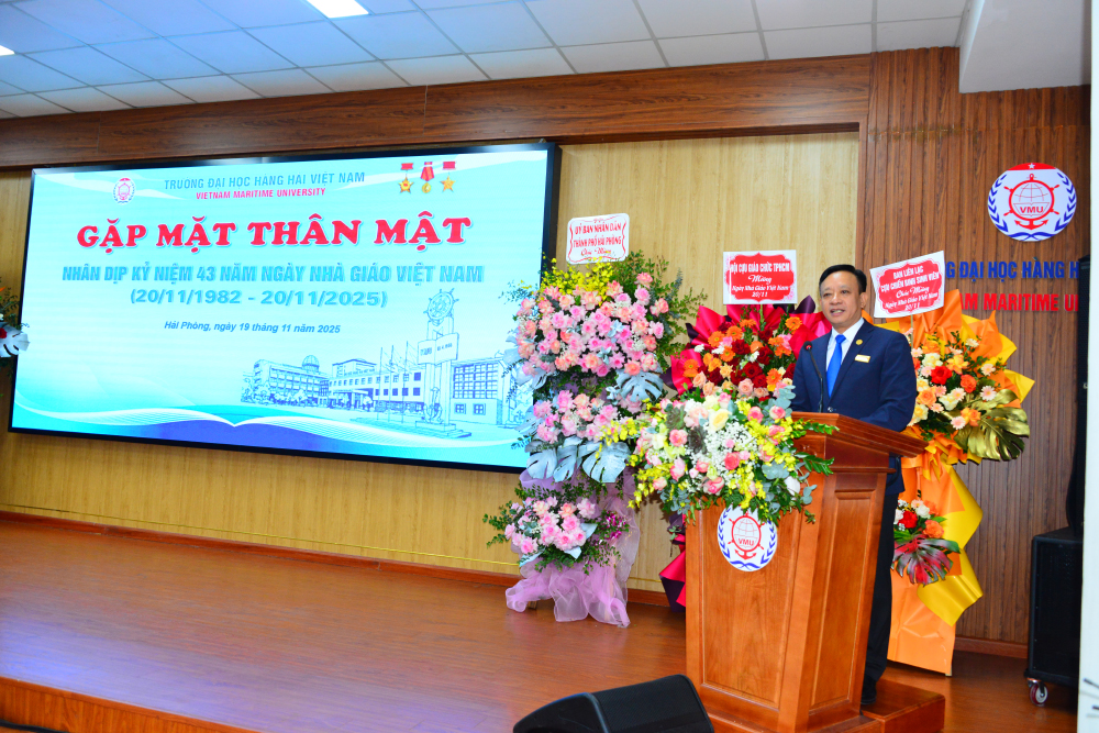 Nhân dịp này, Hiệu trưởng Nhà trường cũng điểm qua một số nét nổi bật của Trường về công tác tuyển sinh & đào tạo, quan hệ quốc tế, kiểm định chất lượng cơ sở giáo dục và các chương trình đào tạo, nghiên cứu khoa học, cùng nhiều lĩnh vực khác. Thầy Hiệu trưởng Phạm Xuân Dương tự hào nhấn mạnh: Ngày 24/10/2025, Trường Đại học Hàng hải Việt Nam vinh dự được tham dự Đại hội Thi đua yêu nước Bộ Xây dựng lần thứ I (2025-2030) và đón nhận Huân chương Lao động hạng Nhất - phần thưởng cao quý của Đảng và Nhà nước, ghi nhận những đóng góp bền bỉ của Nhà trường trong giáo dục, đào tạo, nghiên cứu khoa học và phát triển nguồn nhân lực chất lượng cao phục vụ cho ngành hàng hải và đất nước. Đặc biệt, trong bối cảnh Nhà trường đang triển khai thực hiện Đề án “Xây dựng Trường Đại học Hàng hải Việt Nam là trường trọng điểm quốc gia về đào tạo, nghiên cứu phục vụ phát triển bền vững kinh tế biển giai đoạn đến 2030, tầm nhìn đến 2045” đã được Thủ tướng Chính phủ phê duyệt tại Quyết định số 1901/QĐ-TTg ngày 05/9/2025, mở ra những cơ hội phát triển mới, đồng thời đòi hỏi thầy và trò Nhà trường phải nỗ lực hơn nữa để đáp ứng vai trò và trách nhiệm trong giai đoạn mới.