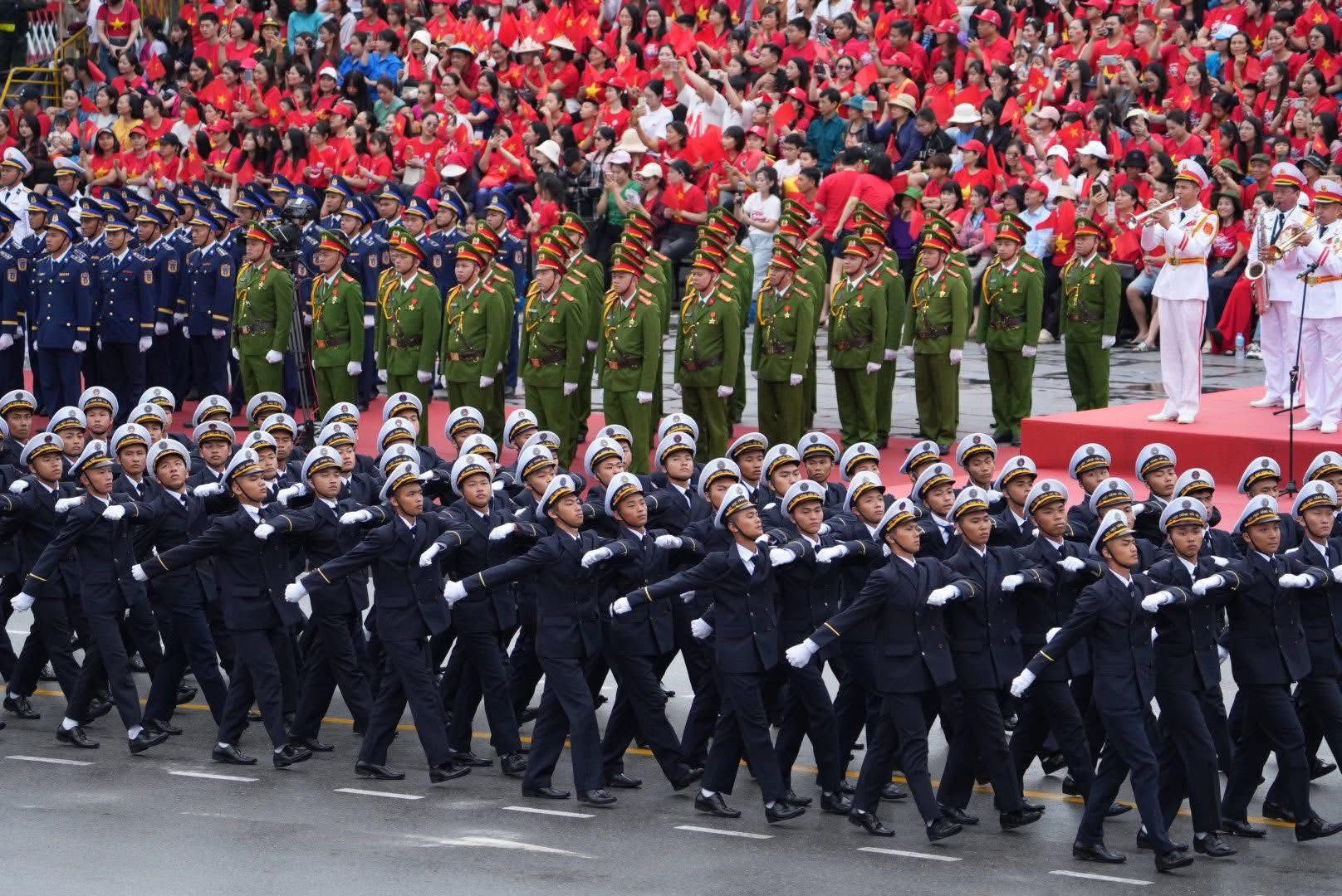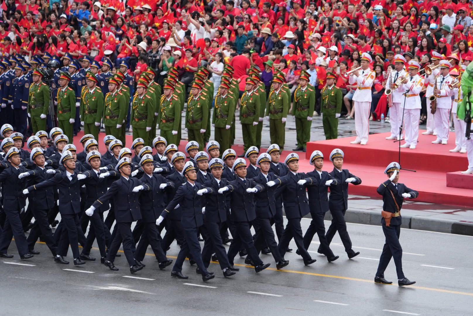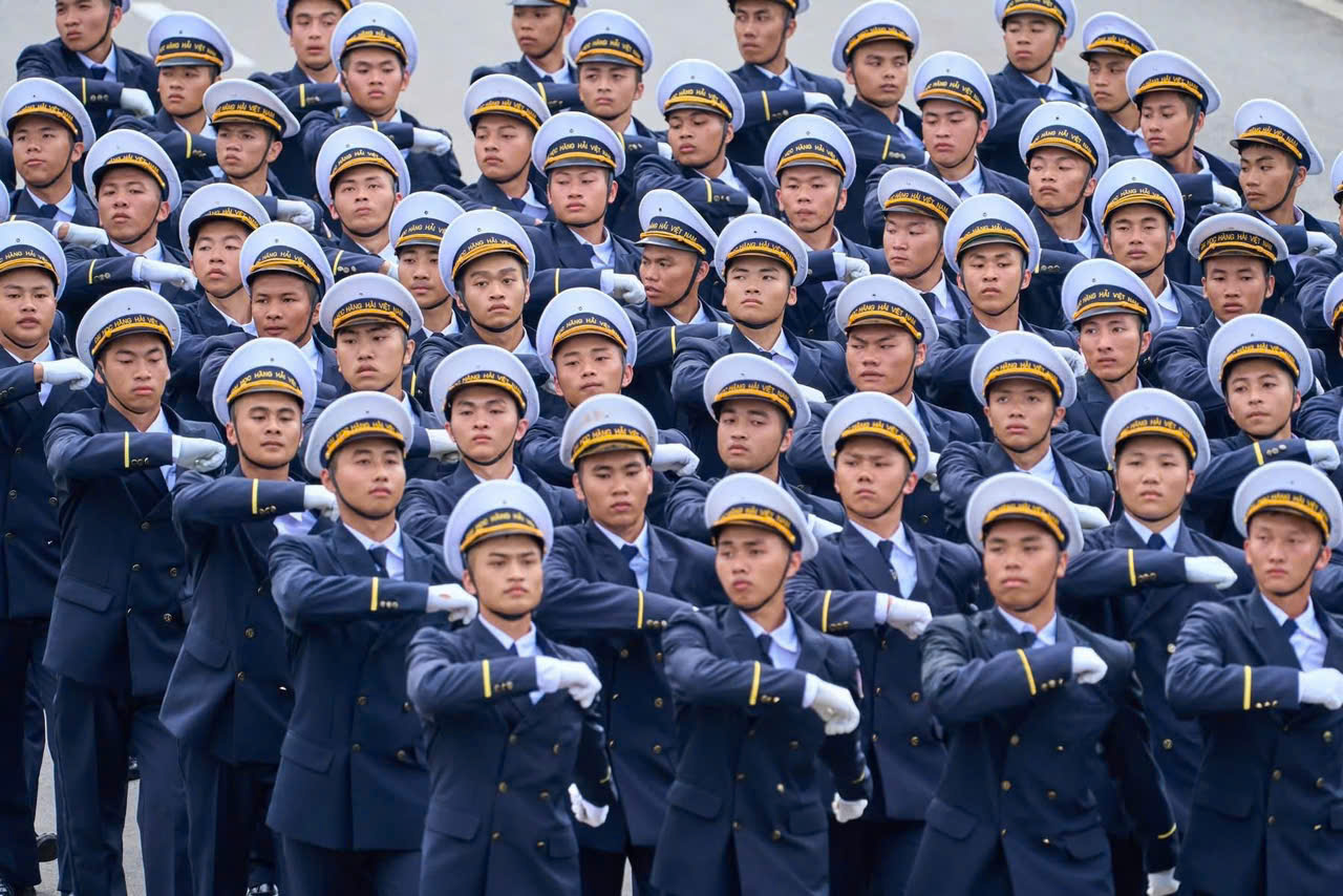 Khối diễu binh, diễu hành mang trên mình bộ lễ phục của sinh viên Trường Đại học Hàng hải Việt Nam
